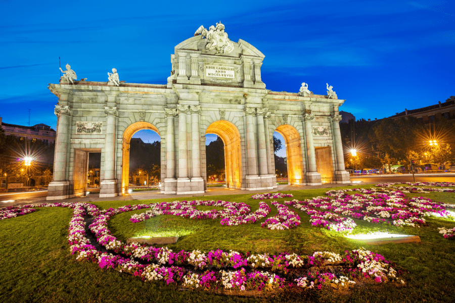 - Puerta de Alcala – chiếc cổng hoành tráng từng là lối vào phía đông của Madrid nhưng ngày nay là một biểu tượng của thủ đô Tây Ban Nha.