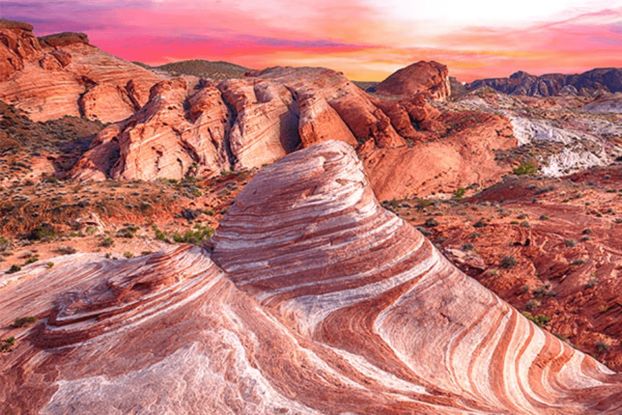 - Công viên tiểu bang Valley of Fire – Là công viên địa chất của bang Nevada. Khu bảo tồn có diện tích gần 46.000 mẫu Anh (19.000 ha) nằm ở vị trí 16 miles (26 km) về phía Nam của Oventon thành phố Navada. Công viên tiểu bang lấy tên từ các thành tạo sa thạch đỏ, Aztec Sandstone, được hình thành từ các cồn cát dịch chuyển cách đây 150 triệu năm..