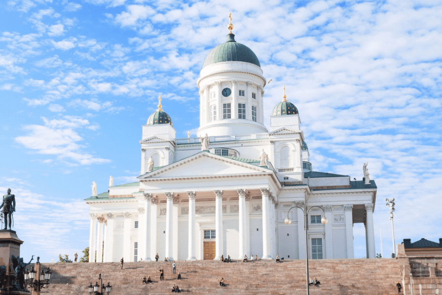 - Nhà thờ Trắng Helsinki Cathedral – công trình tôn giáo biểu tượng của Phần Lan, nằm trên đồi nhìn xuống Quảng trường Thượng viện. Mái vòm xanh lam nổi bật giữa nền tuyết trắng, ánh sáng phản chiếu lên lớp đá cẩm thạch tạo nên khung cảnh tựa tranh.