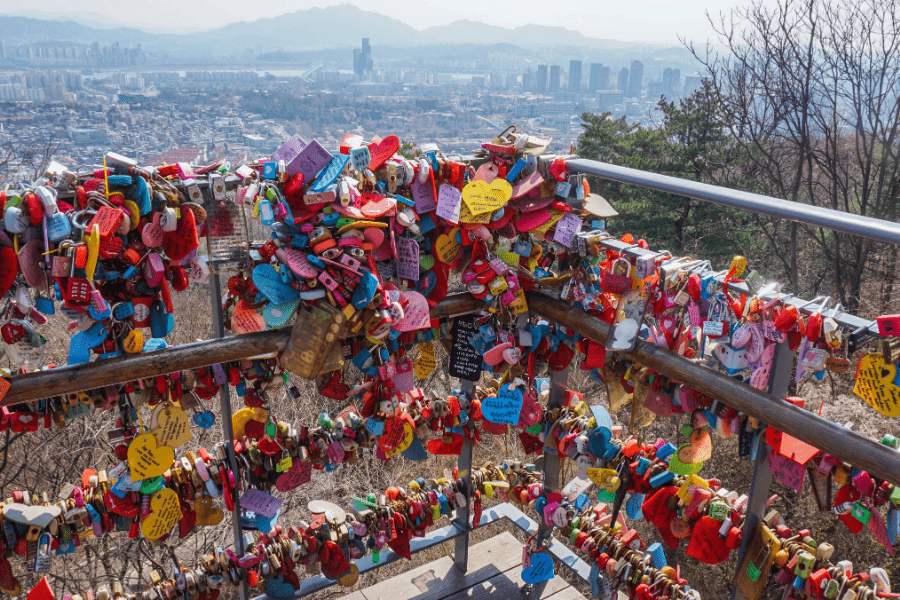 - Tháp Nam San (N Seoul Tower) – một biểu tượng và là nơi cao nhất thành phố Seoul. Bạn có thể lên đỉnh tháp để ngắm toàn cảnh Seoul bằng thang máy. (chi phí tự túc)