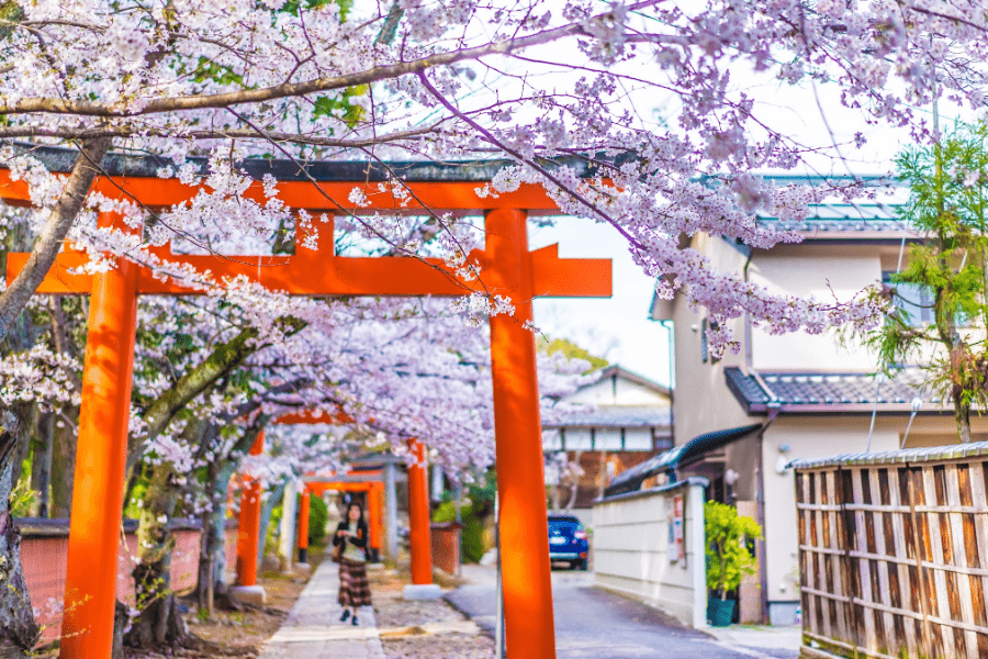 - Chùa nghìn cột Fushimi Inari – đây là ngôi đền thờ thần đạo nổi tiếng của Kyoto. Nơi đây nổi bật với hơn 1000 cổng Tori màu đỏ son, những chiếc cổng Tori này liên kết với nhau tạo thành những con đường mòn nằm phía sau khu đền chính. Những con đường này dẫn chúng ta đến với khu rừng rậm của ngọn núi Inari linh thiêng, ngọn núi cao 233 mét nằm trên đất của ngôi đền.