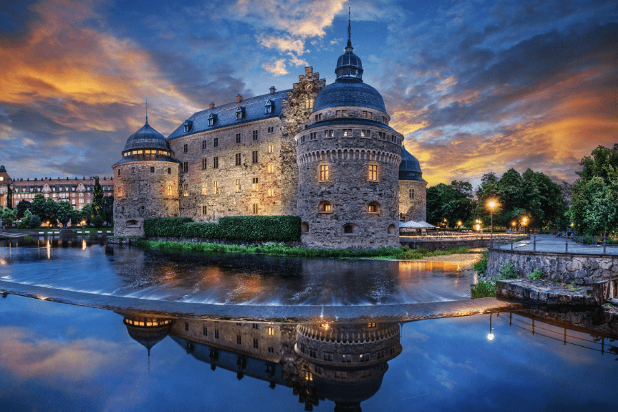 - Lâu đài Örebro ngọc bích đáng giá của ký ức Thụy Điển – (chụp hình bên ngoài) được xây dựng năm 1560 và mở rộng trong triều đại hoàng gia Vasa. Trong hơn 700 năm, lâu đài Örebro luôn dõi theo tất cả mọi người di chuyển trên cây cầu bắc qua sông Svartån.