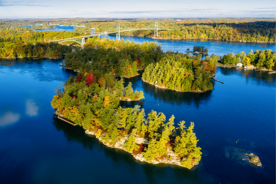 - Xứ Ngàn Đảo (Thousand Islands) – Điểm du lịch nổi tiếng hơn 150 năm qua, với 1,864 hòn đảo lớn nhỏ trải dài trên sông Saint Lawrence hình thành đường biên giới tự nhiên giữa Mỹ và Canada.