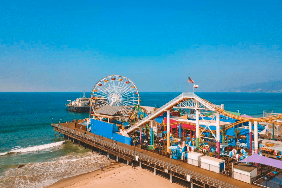 - Vòng xoay vui vẻ Santa Monica – Vòng quay ngựa gỗ Santa Monica – một phần lịch sử đầy mê hoặc của những năm 20, nơi đã trải qua một thời kỳ cải tạo, nó vẫn giữ được tất cả sự quyến rũ của nó. Khi vòng đu quay hoạt động, 44 con ngựa (không con nào giống con nào) cùng với một con thỏ, một con dê và hai chiếc xe trượt tuyết di chuyển nhịp nhàng (chi phí các trò chơi tự túc).
