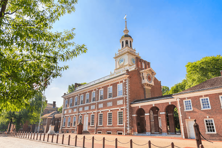- Dinh độc lập Independence Hall – là nơi diễn ra cuộc họp thống nhất 13 bang của nước Mỹ và nhiều sự kiện lịch sử khác.