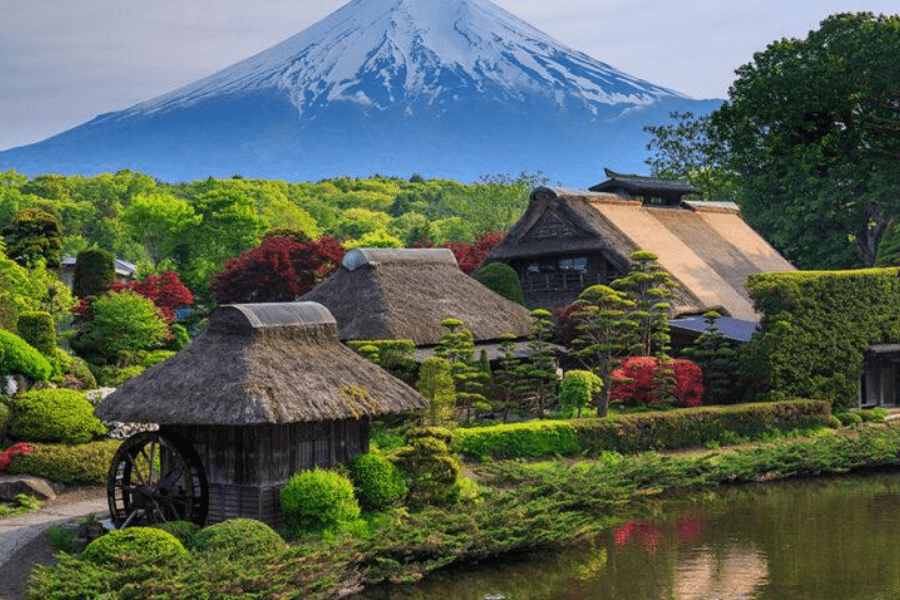 - Làng cổ Oshino Hakkai – dưới chân núi Phú Sĩ, là một trong những địa điểm ngắm núi Phú Sĩ đẹp nhất. Ngôi làng cổ kính, yên bình, mộc mạc vẫn mang nét kiến trúc truyền thống Nhật Bản với 8 hồ nước được nuôi dưỡng từ những lớp băng tuyết tinh khiết tan chảy theo sườn dốc của núi Phú Sĩ. Đến nơi đây, quý khách được thưởng thức rất nhiều đặc sản tươi ngon của vùng như bánh mochi nướng, các loại trái cây, kem tươi, đậu hũ, bánh gạo, nấm và măng phơi khô...